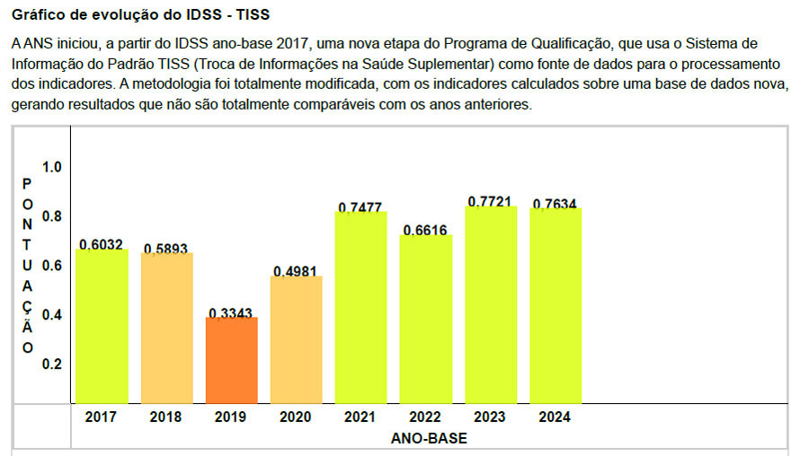 Os resultados da avaliação das operadoras são traduzidos pelo Índice de Desempenho da Saúde Suplementar (IDSS). O IDSS é um índice composto por um conjunto de indicadores agrupados em quatro dimensões e é calculado com base nos dados extraídos dos sistemas de informações da Agência ou coletados nos sistemas nacionais de informação em saúde.